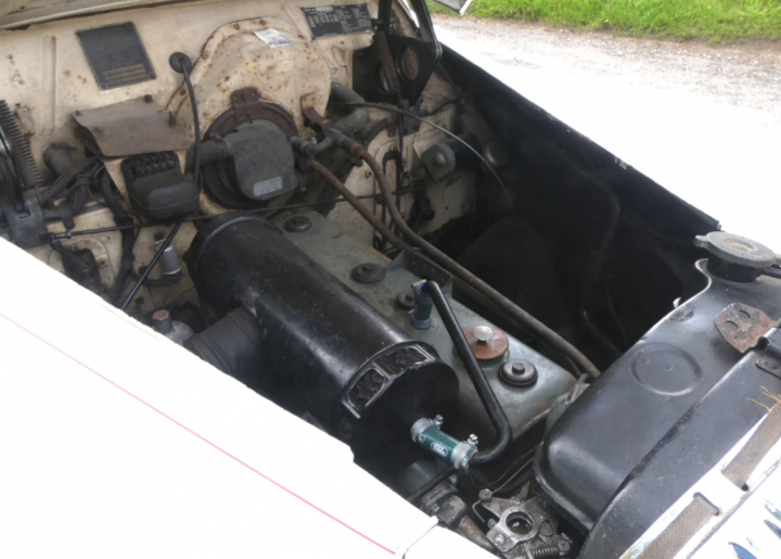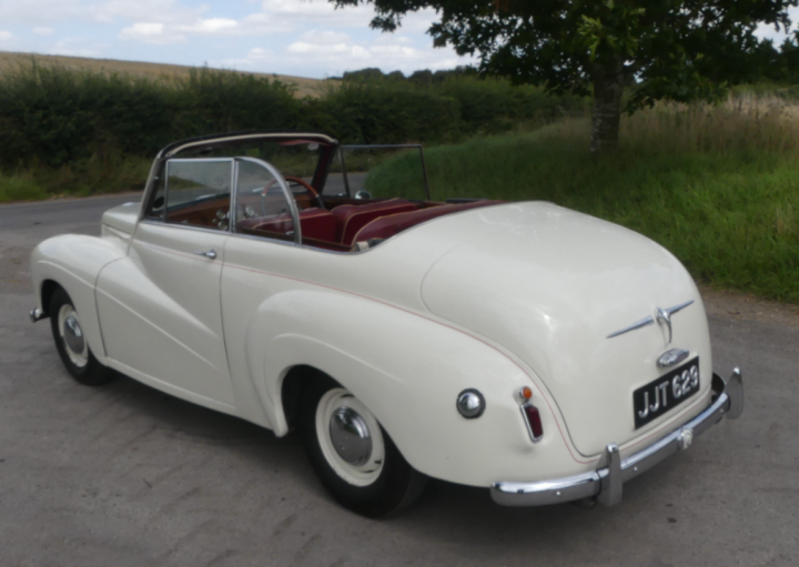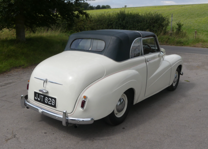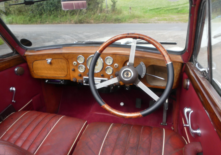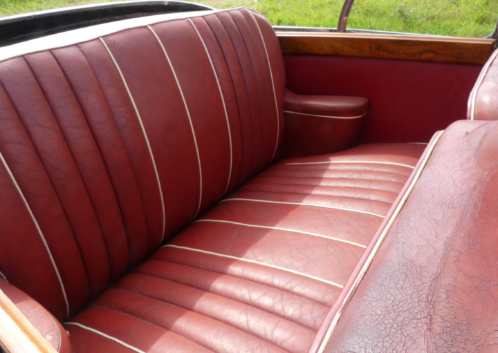 Rare example beautifully presented in cream with red leather interior, last owner for 16 years and only 2 previously, recently had a brakes overhaul, full service and new stainless exhaust, battery, plugs, points etc. Bodywork was restored in 2007, runs very sweetly, pre-select gearbox works as it should, drove 40 miles to us in heavy traffic. Interior is in fine original condition, power hood is very good also and works well. Odometer reading of just over 56,000 miles is believed to be correct and is supported by a good history file, photo of this car appears on the dust cover of Carbodies – The Complete Story and it comes with plenty of other literature, manuals, handbooks etc. and some very useful spares. One to treasure.