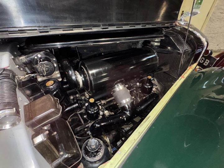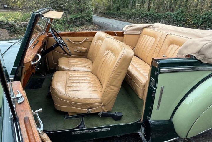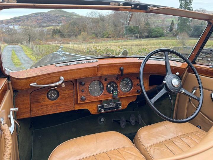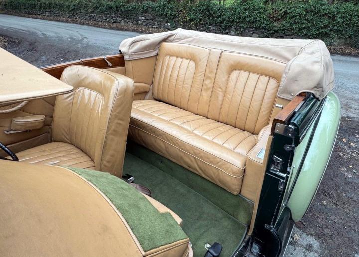A particularly sound and correct example of a desirable & rare drophead, restored in the 1970s to an award-winning standard. In fact, amongst other prizes, B4HR won several awards at Pebble Beach, including 1st place in class in 1978. When new, the car was displayed at the Earls Court Motor Show, before being delivered to its first owner in Gibraltar, later going to the USA and later still to France. Forty-six years after the restoration (thirty-two of which were with one owner), the car is still in very good order, running and driving very pleasantly, excellent structurally, including doors which close with a satisfying 'click' with no up & down movement and a rust-free chassis & underside, due no doubt to the warm dry climates the car has lived in at various stages of its life. Cosmetically, the paint is showing its age & lifting in places, but still mostly presentable, the leather is original, in very good condition with no rips or tears, the woodwork is attractive and the hood & lining are excellent. Looking very handsome in two shades of green with tan leather and a beige power hood. The car is fitted both with original trafficators & flashing indicators, which are incorporated into the existing side and tail lights - very neat. There are even colour co-ordinated inertia reel seat belts fitted and radial ply tyres to which the car is well suited. Wholesome and appealing, a desirable car and good value for money, offered serviced, performing very nicely, and MoT tested.